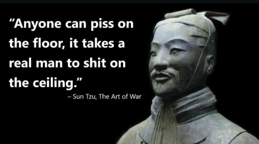“Anyone can piss on the floor, it takes a real man to shit on the ceiling.” — Sun Tzu, The Art of War. #wisdom #toilethumor.