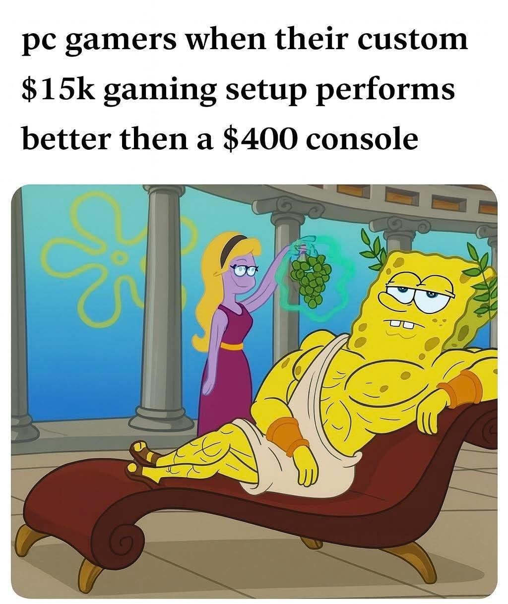 Pc gamers when their custom $15k gaming setup performs better than a $400 console. #gamerlife #pcmasterrace.