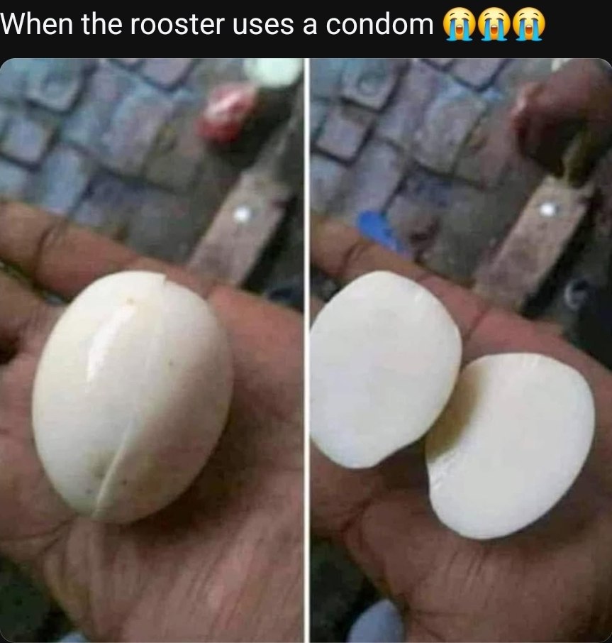 When the rooster uses a condom 😂😂😂 Bruh, who knew chickens had protection game this strong? #meme #LOL #eggs.