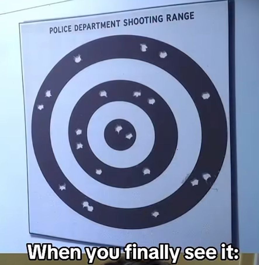 When you finally see it: A police target full of missed shots. Been there? 😂 #relatable #fail.