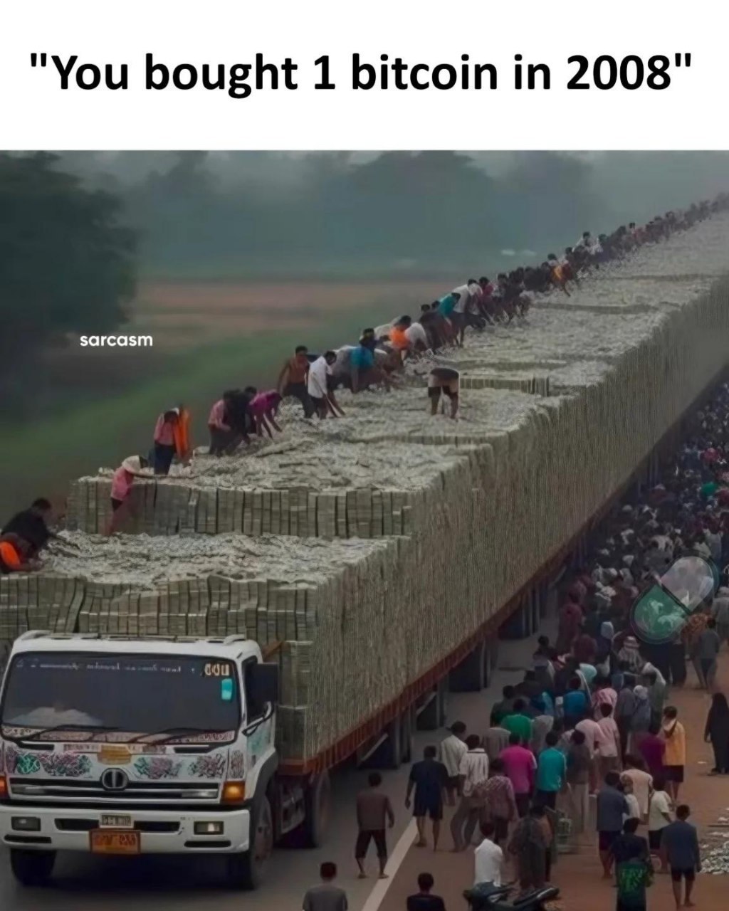 You bought 1 bitcoin in 2008. Now look at you—riding that money truck straight to the moon! #bitcoin #rich #win.