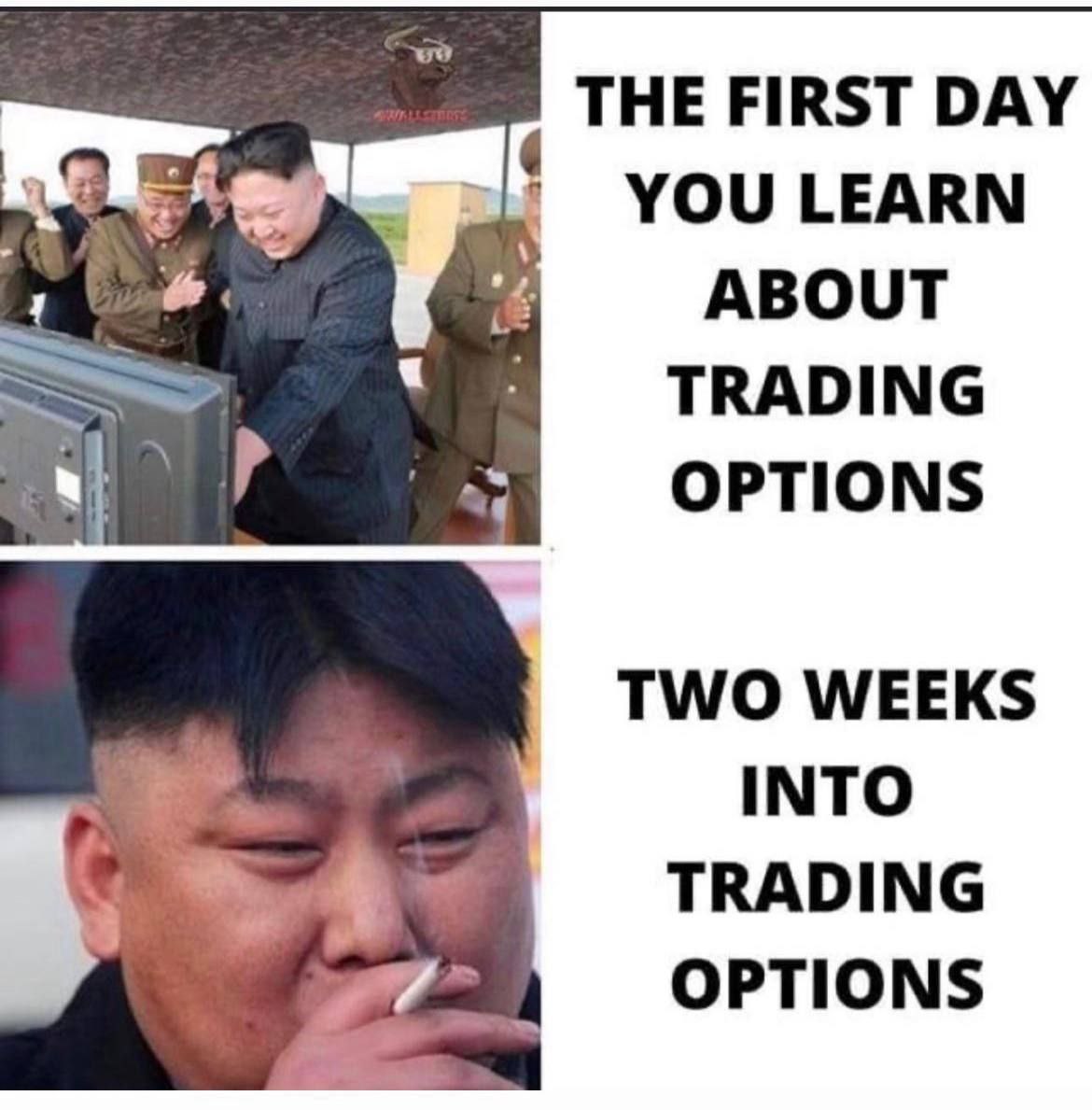 You on the first day you learn about trading options vs two weeks into trading options 😂💀 #trading #options #mood.
